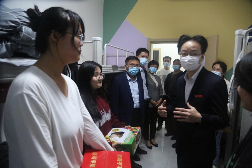 校领导深入学生宿舍、公寓楼与学生亲切交谈
