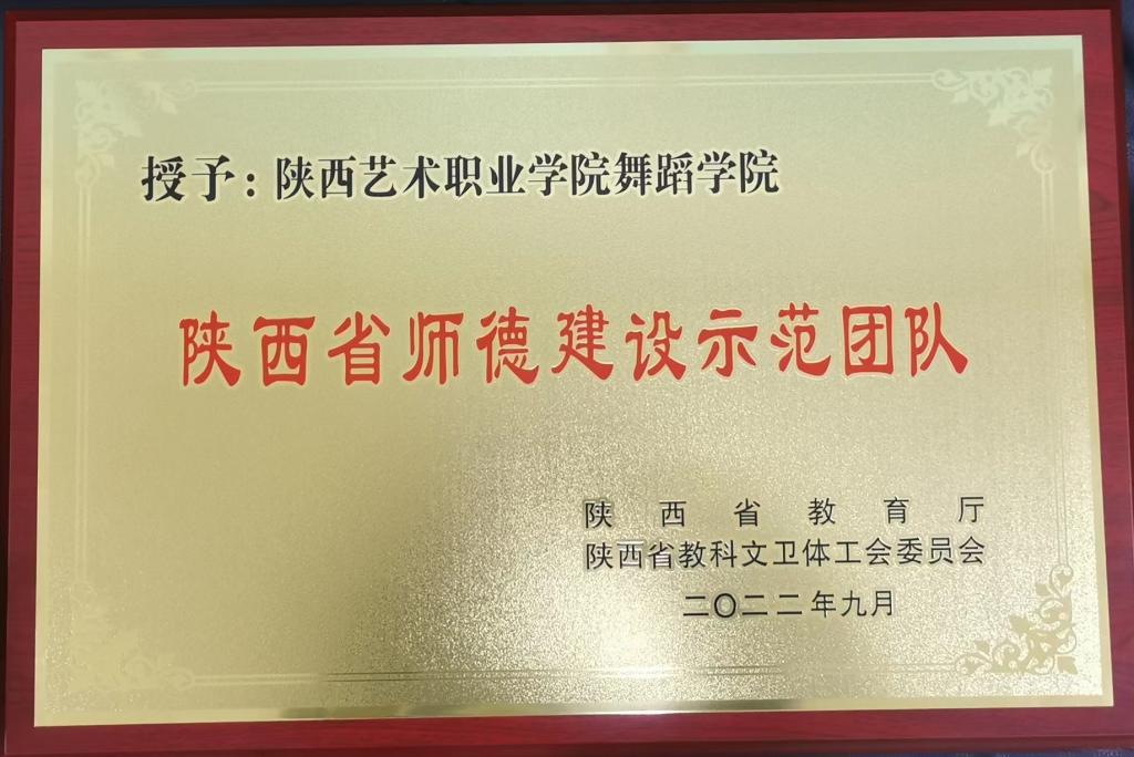 为大力弘扬立德树人、敬业奉献的高尚师德,表彰在我省教育改革发展事业中担当作为、甘于奉献的优秀教师和先进团队,省教育厅和省教科文卫体工会委员会组织开展陕西省2022年师德标兵和师德建设示范团队评选活动。我校舞蹈学院被授予陕西省“师德建设示范团队”荣誉称号。