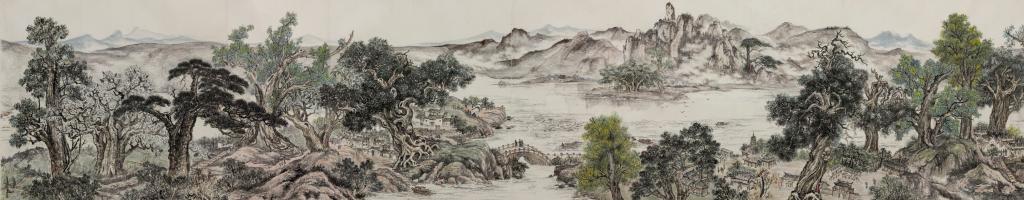 该画由陕西艺术职业学院主创、陕西书画研究会协创,高1.45米,长71米,由陕西艺术职业学院原副院长、陕西书画研究会会长肖幸海教授主持,集结二十余位画家集体创作而成。作品分十段装裱,每段单独成幅,无缝对接即为长卷,分别为《日出东方》《绿水青山》《勃发雄起》《擎天泽地》《圣光照耀》《韶华辉映》《祖脉绵延》《林深地旷》《小康家园》《天远海阔》。