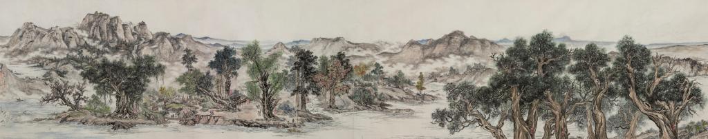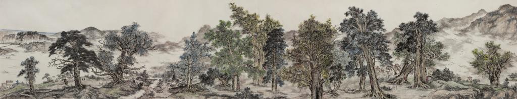 作品选取了全国34个省级行政区最具有代表性的100棵古树为表现对象,以黄河(长江)为纽带贯穿全幅,以华夏名山秦岭、泰山、华山、太行等为背景,其间穿插体现革命文化的一大会址、南昌起义纪念地、古田会议旧址、遵义会议旧址、七大会址、延河桥、韶山冲、梁家河等近30处,穿插体现传统文化的轩辕庙、仓颉庙、孔庙、孔林、老子说经台、长城、司马迁祠、山西大槐树旁的寻根祭祖园等以及各民族的特色民居几十处,还有体现社会主义先进文化的现代化建筑群。