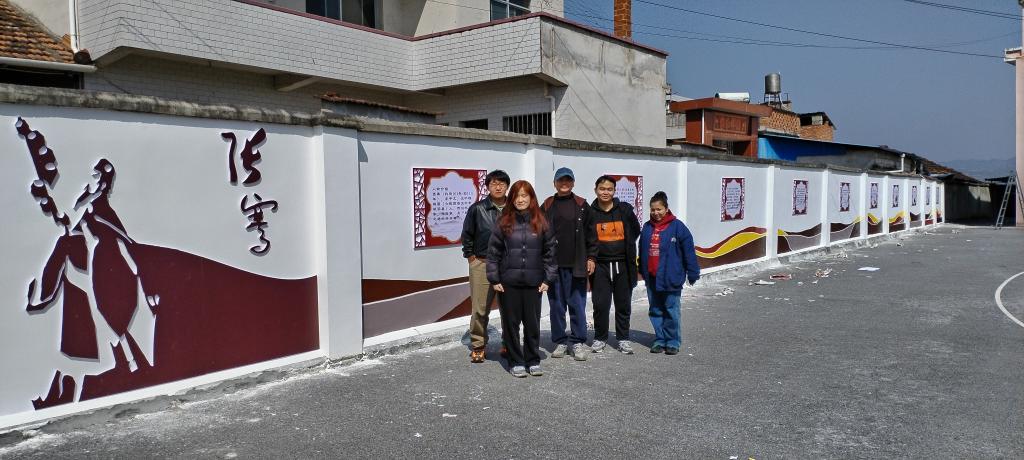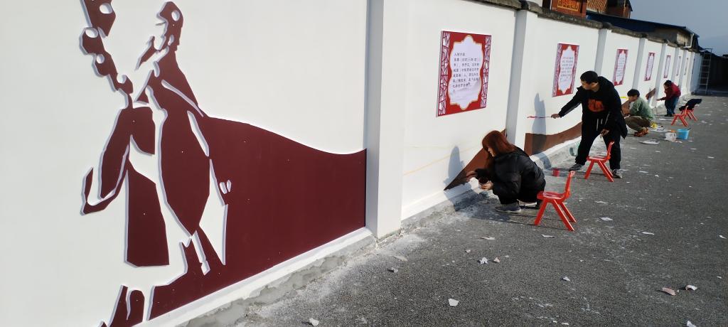 陕西艺术职业学院美术与设计学院教师王涛、杨都带领10余名学生手绘500平米墙画助力城固县乡村振兴
