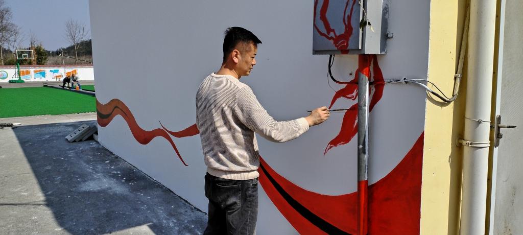 近日,陕西艺术职业学院美术与设计学院王涛、杨都两位老师带领10余名学生为城固县乡村小学绘制近500平米的墙画,提升乡村学校美育环境,用文艺助力乡村振兴。
