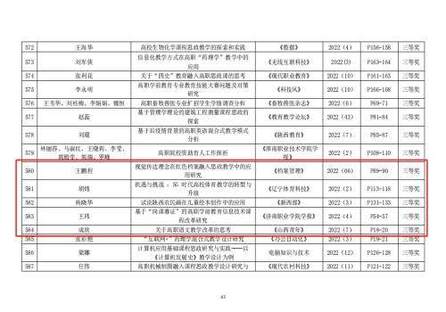 近日,陕西省职业技术教育学会公布了2022年度优秀职教论文评选结果。我校报送的8篇论文获优秀论文奖。其中,张思敏撰写的《“互联网+”在线教学的思考与建议》、华蕾撰写的《高职艺术教育与工匠精神的培养探析》及张海莉撰写的《大学生居家防疫的压力应对及自我调适——以陕西艺术职业学院心理大数据调研为例》荣获二等奖;王鹏程撰写的《视觉传达理念在红色档案融入思政教学中的应用研究》、胡炜撰写的《机遇与挑战:5G时代高校体育教学的转型与升级》、杨晓华撰写的《试论陕西农民画在儿童绘本创作中的应用》、王玮撰写的《基于“岗课赛证”的高职学前教育信息技术课程改革研究》及成欣撰写的《关于高职语文教学改革的思考》荣获三等奖。