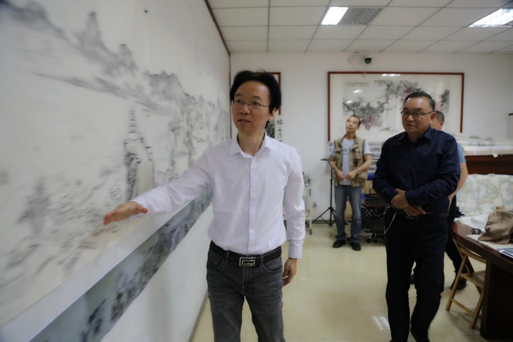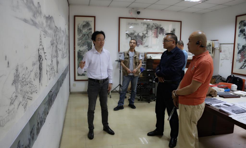 6月13日下午,校长杨孝龙赴国画长卷《精神家园》创作工作室对项目创作情况调研指导。