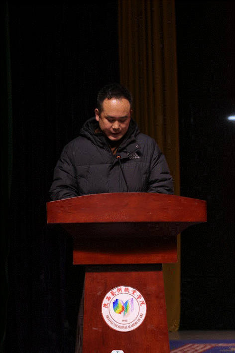 洋县剧团办公室主任薛博在结业典礼中讲话
