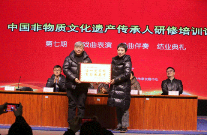 接下来,由出席结业典礼的领导们分别向,张文剑、赵凡、张凯丽、李雅芝4名优秀学员颁发优秀学员证书;并由戏曲学院院长李小雄、副院长张文宏代表学院接收了两家剧团向我院赠送的牌匾。
