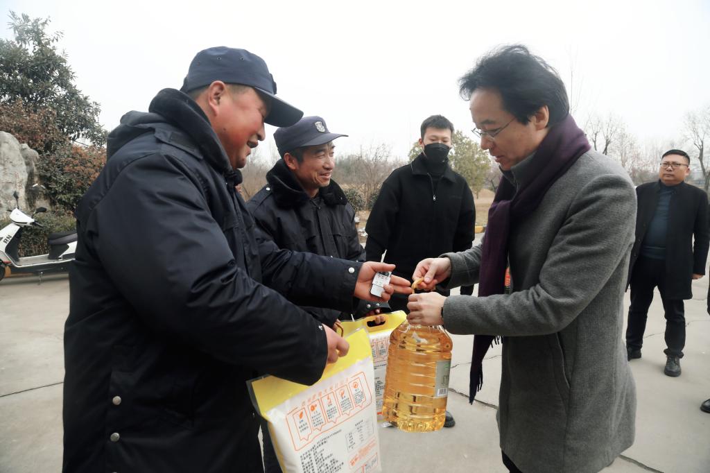 校党委副书记、校长杨孝龙为寒假期间仍然值守在一线的工作人员送去新春祝福