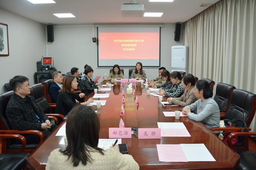 3月28日,陕西科技大学网络思想政治工作中心副主任董雪、西安新闻网副总编辑吕华一行来我校调研交流,美术与设计学院院长曹小劲、党总支书记张莉,音乐学院院长薛莲,戏曲学院副院长张冬,党委宣传部副部长周艳艳及相关二级学院各教研室负责人等一同参与交流活动。