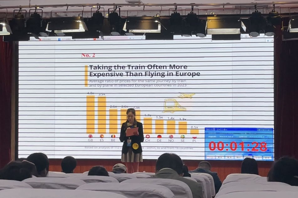 此次比赛由陕西省教育厅主办,西安铁路职业技术学院承办,共有来自全省38所高职院校的70名选手参加了本次比赛。该比赛对接全国职业院校技能大赛,是省内高职院校英语技能比赛中竞争最为激烈的赛项。本次比赛以淘汰赛的方式展开,由“中国故事”“情景交流”“职场交流”和“职场辩论”四个环节组成,其中“情景交流”“职场辩论”两个环节为师生同赛。基础部姚远、薛潇两位老师与两名选手结为竞赛共同体,同台竞技,默契配合,展示出了我校师生应有的风采。