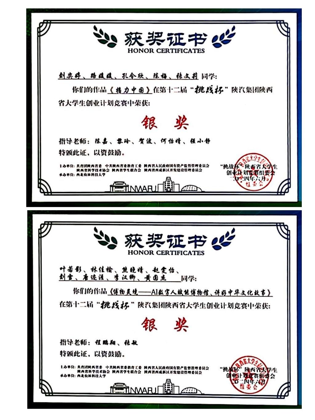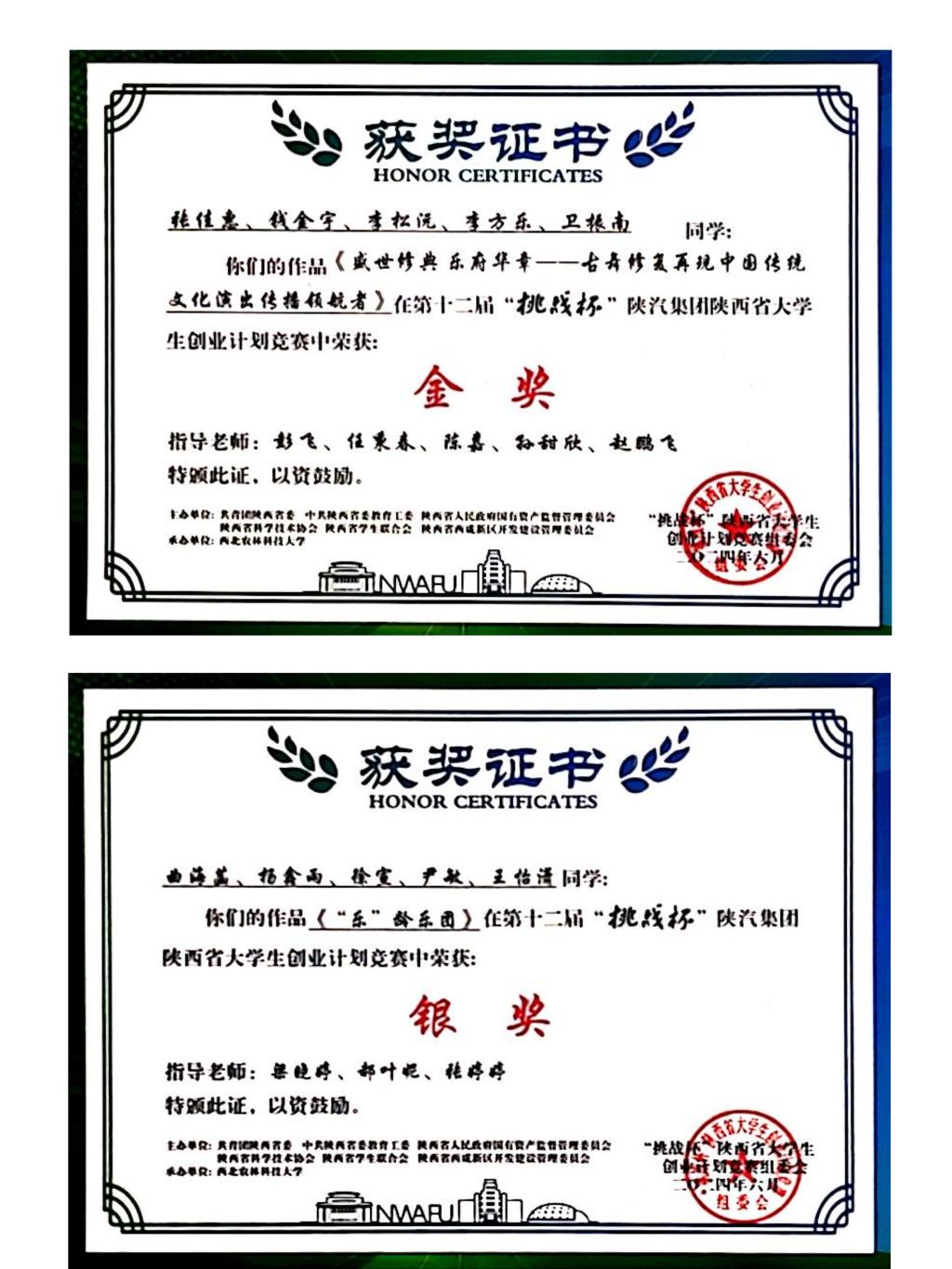 2024年6月7日,由共青团陕西省委,中共陕西省委教育工委,陕西省人民政府国有资产监督管理委员会,陕西省科学技术协会,陕西省学生联合会,陕西省西咸新区开发建设管理委员会联合主办的第十二届“挑战杯”陕汽集团陕西省大学生创业计划竞赛闭幕式暨颁奖仪式在西北农林科技大学举办。在此次比赛中我校再创新高,喜获金奖一项、银奖三项,铜奖六项,我校也荣获“优秀组织奖”和“进步显著奖”,是我校“挑战杯”赛事中获得奖项最高、最多的一次。