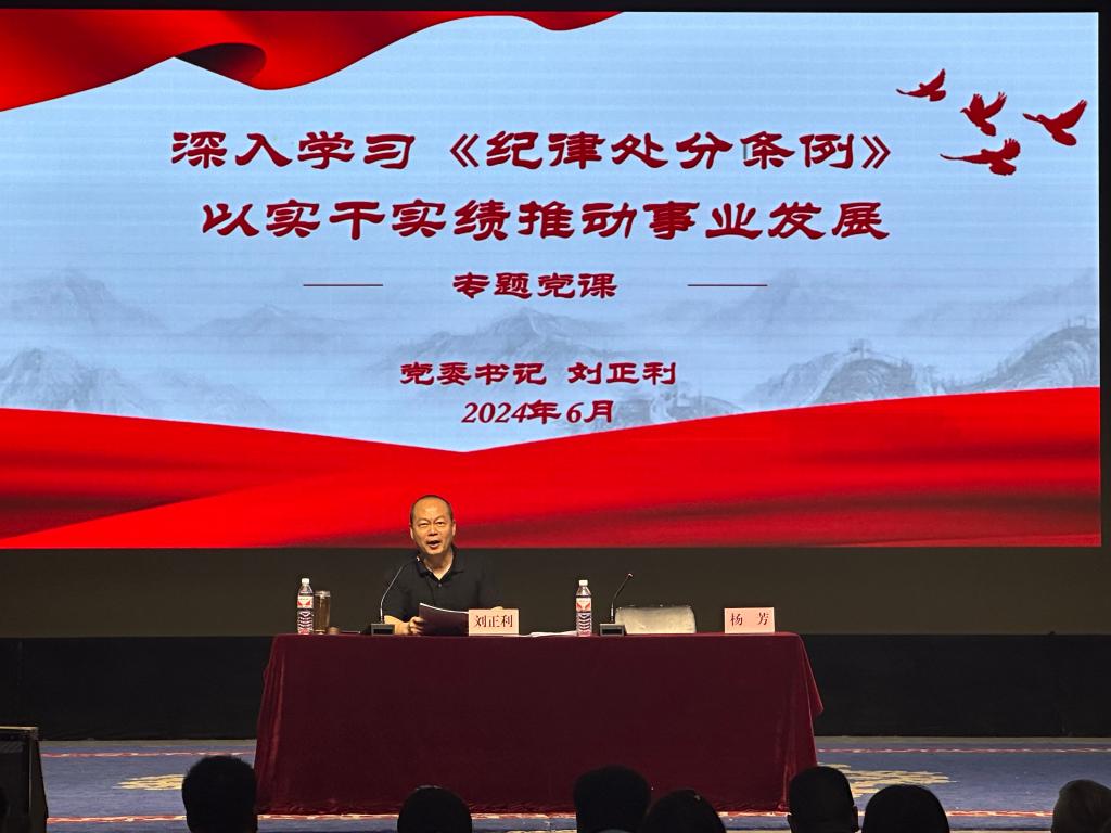 刘正利围绕党纪学习,分别从把握新时代党纪教育新特点、原原本本学条例、一心一意涵养生态三个方面,用通俗易懂、深入浅出的语言,生动阐述了新修订的《中国共产党纪律处分条例》。党课内容丰富、涉及面广、针对性强,为党员同志原原本本学、联系实际学、融会贯通学、系统整体学提供了指导。