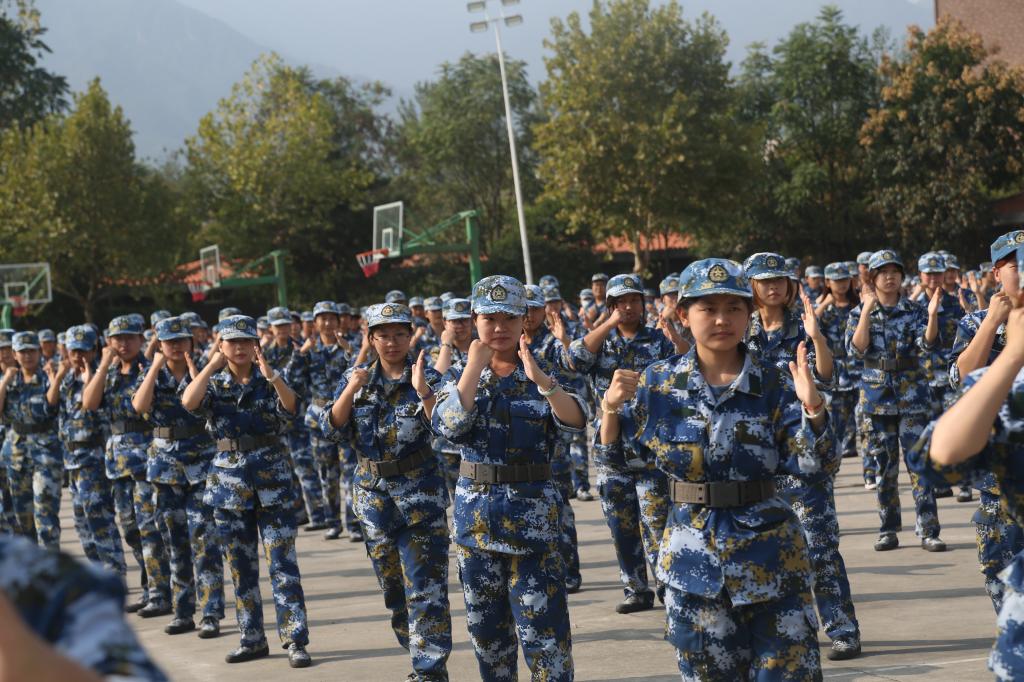 ↑党委副书记、校长杨孝龙宣布军训成果汇报展示开始