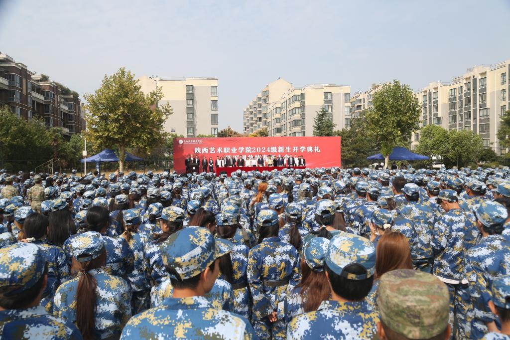 ↑陕西艺术职业学院2024级新生开学典礼暨军训总结表彰大会现场