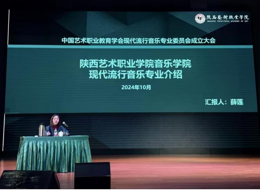 当天下午,学会领导和现代流行音乐专委会的参会人员进行了流行音乐专业建设的经验交流。薛莲作专题报告,从我校音乐学院概况、专业建设、建设成效三个方面做了详细的汇报。她指出,现代流行音乐专业建设要立足于培养学生的实践能力和创新精神,以适应不断变化的音乐市场和听众需求,不仅需要紧跟时代潮流,还要注重传统音乐元素的融合与创新。并表示,随着现代流行音乐专委会的正式成立,陕西艺术职业学院音乐学院将与各兄弟院校携手并进,共同推动这一艺术形式在高等职业教育层面的创新发展。
