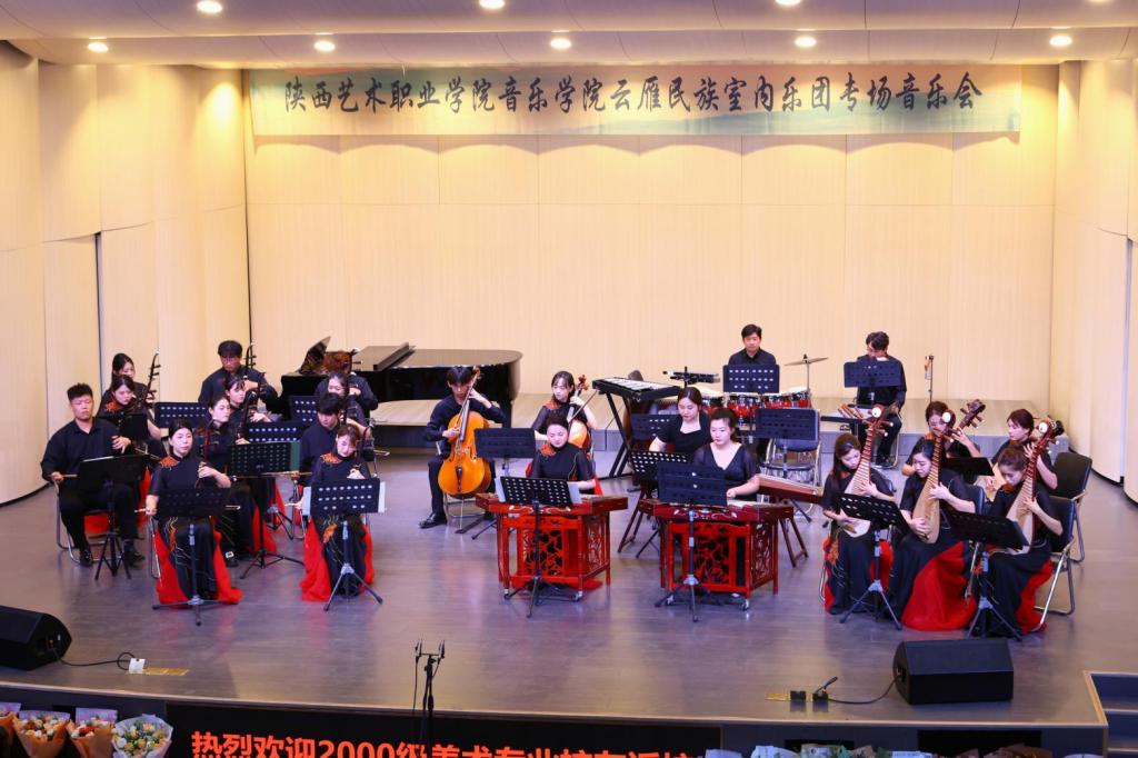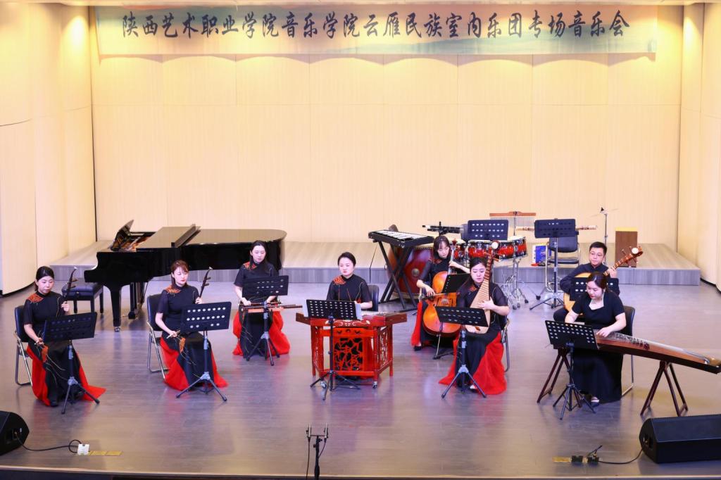 据悉,担任本场音乐会演奏的乐团成员均是音乐学院优秀青年教师和学生,乐团于2019年初由我校音乐学院院长薛莲发起组建,由热爱中国民族器乐教育事业的优秀青年教师组成,是一个年轻而富有活力的团队。乐团以弘扬中国优秀传统文化,传承陕西地方音乐为己任,秉持“传承中积累,发展中创新”,不断探索,努力成为具有时代精神,又极具地方特色的专业艺术团队。室内乐团于2019年参加由中央广播电视总台主办的中国器乐电视大赛入围全国20强;2020年获得陕西省民族器乐大赛优秀组合奖;2021年6月录制文化和旅游部“百年百项”小型作品竹笛与室内乐《飘雪》。2021年10月原创室内乐作品《青衿》获得“敦煌奖”中国室内乐新作品展评优秀奖;2021年11月录制原创室内乐作品《鸿》MV并成功入选文化和旅游部第七届丝绸之路国际艺术节青年艺术家专场“风华长安”民族器乐原创新作品音乐会。乐团成立以来参加多项国家、省市重大演出任务,代表学院参加了赴陕西省委党校、西京医院986医院、苏州工艺美术职业技术学院等多地交流演出活动,2023年参加“兴文化 育新人”舞台艺术展演活动;参加学校与苏州工艺美术职业技术学院党日联谊活动文艺演出;参加学院“双师型”教师教学成果展示活动;参与匈牙利塞格德大学巴托克艺术学院代表团来我校交流访问演出活动;参加西安秦汉新城2024新年音乐会等活动,获得极大好评。