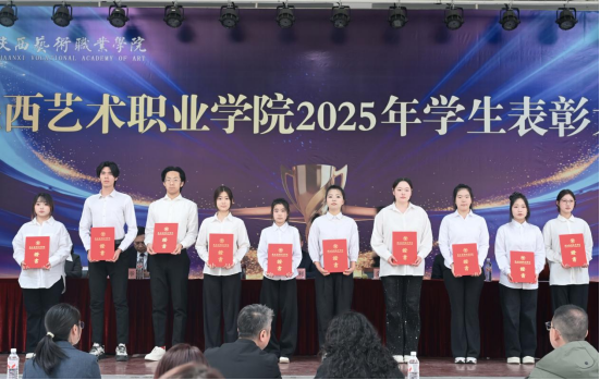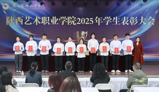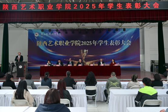 最后,党委书记刘正利饱含深情发表讲话,向受表彰的先进集体和个人致以热烈的祝贺。他指出,2025 年,学校坚持以习近平新时代中国特色社会主义思想为指导,紧扣立德树人根本任务,广大学生在世界职业院校技能大赛、中国国际大学生创新大赛、全国大学生职业规划大赛等国内外高水平赛事中屡创佳绩,充分展现了陕艺学子扎实的专业素养与昂扬的精神风貌,为学校高质量发展注入了强劲动力。讲话中,刘正利向全体学生提出三点殷切期望:一是要坚定理想信念,心怀家国、志存高远,以艺术作品传递真善美,彰显新时代艺术青年的使命担当;二是要秉持匠心精神,深耕专业、勤学苦练,不断锤炼过硬技艺,争做本领扎实的艺术 “守艺人”;三是要坚守文化根脉,守正创新、薪火相传,遵循 “传承不守旧,创新不离宗” 的要求,自觉传承弘扬中华优秀传统文化,希望全体同学向下扎根、向上生长,以青春之我、奋斗之我,为强国建设、民族复兴贡献艺术力量。