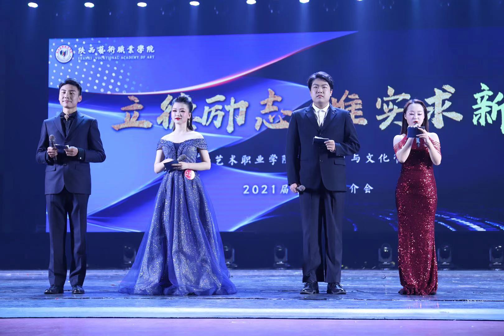 陕西艺术职业学院党委副书记、院长杨孝龙及其他院领导与40位特邀嘉宾、18位授牌单位嘉宾、系部负责人等出席双选会。杨孝龙为18家实习实训基地授牌。院党委委员、副院长佘占宏,学管系副主任刘慧敏分别为双选会致辞。