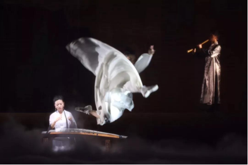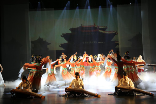 | 陕西艺术职业学院原创的中国首部跨界融合筝乐剧《丝路筝途》演出现场 |