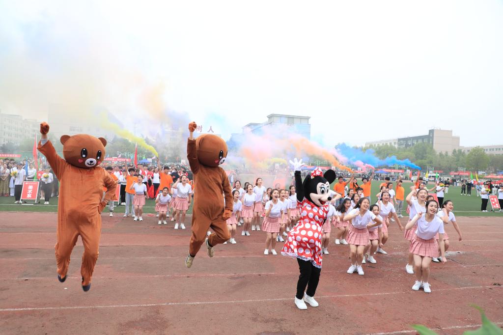 随后,伴随着高昂激荡的运动员进行曲,国旗、校旗、会旗护卫队和裁判员代表及各系部、行政处室代表队方阵依次进入会场。学院各代表队围绕运动会主题及系部专业特色,开始精彩的方阵表演,戏曲系运动员身着戏装,在铿锵锣鼓声中,以运动场为舞台,尽显戏曲传统文化魅力;影视系融川剧、武术、街舞等表演为一体,并以红伞为主要道具,变化出五星红旗造型,创意独特,寓意深刻;舞蹈系古典、民族、现代等不同类型的舞蹈轮番上阵,精湛的舞艺,满怀的激情,大放异彩;美术系运动员将手中的画笔化作一身戎甲,在别具一格的舞蹈表演中,展现独特艺术构想,赓续传统,抒写时代华章;音乐系安塞腰鼓敲起来,鼓点激越,动作豪迈,舞姿雄浑,以蓬勃向上的生命活力奏响大地之音;学管系以经典卡通人物贯穿整个表演,在充满童真童趣的同时,表演不拘一格,生动展现了依托学院艺术类专业的独特教育优势;流行音乐系啦啦操与街舞巧妙融合,编排精心,活力四射,令人耳目一新;基础部、思政部将体育与艺术表演结合,并以卡通人物形象生动诠释了体育是运动的艺术;行政处室代表队的秧歌表演,绸扇翩飞,步伐欢快,精神饱满,展示着新时代激昂向上,阔步向前的风采。