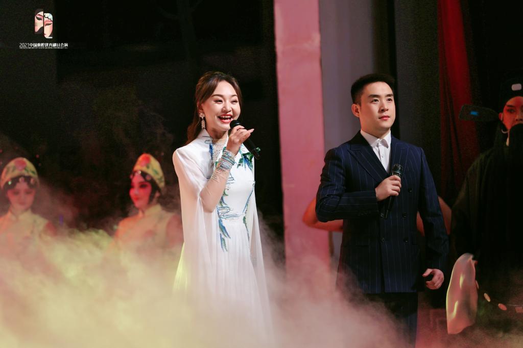 5月15日晚,2021年中国秦腔优秀剧目会演开幕式在古城西安索菲特人民剧院举行。陕西艺术职业学院党委副书记、院长杨孝龙,党政办公室主任许仲举、戏曲系主任李旭阳受邀出席。开幕式上,来自秦腔艺术届20多位中国戏曲梅花奖名角与优秀秦腔演员们同台亮相,秦声秦韵,同心共贺党的百年华诞。陕西艺术职业学院戏曲系青年教师王萍与陕西省戏曲研究院青年演员王航携手演唱了戏歌《大美秦腔》,赢得现场观众喝彩。