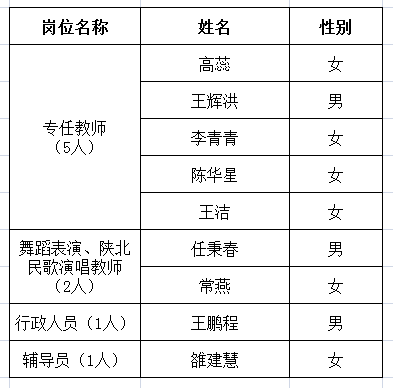 陕西艺术职业学院2019年公开招聘工作人员拟录用名单