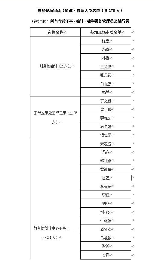 按照《陕西艺术职业学院公开招聘工作人员管理办法(暂行)》和招聘公告要求,经网上报名资格初审,现将符合开考条件岗位和资格初审名单公布(名单见附件1),并对现场审验及考试做如下通知: