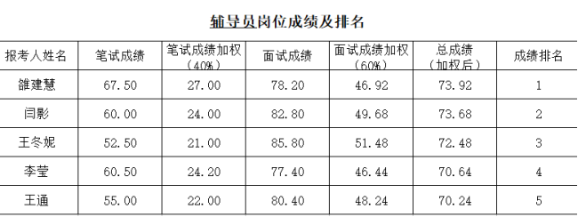学院于2019年11月2、3日分别对应聘人员进行了笔试、专业技能展示、试讲及面试,现将成绩公布如下: