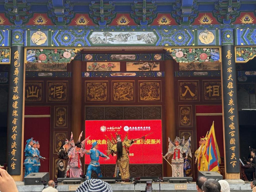 5月16日下午,陕西艺术职业学院戏曲学院在易俗社文化街区开展"传统戏曲进街区·文化惠民促振兴"职业教育周实践活动。此次活动通过秦腔经典剧目展演、戏曲身段教学展示、传统唱腔研习等多元化形式,集中呈现戏曲表演专业"以演促教、演教相长"的教学特色。学生登台展演既是对课堂教学成果的实践检验,更是通过"沉浸式"舞台历练提升学生职业素养的重要途径,生动诠释了"课堂+舞台+社会服务"三位一体的专业人才培养模式,在推动秦腔艺术传承发展的同时,有效实现了职业教育与文化惠民的双向赋能。