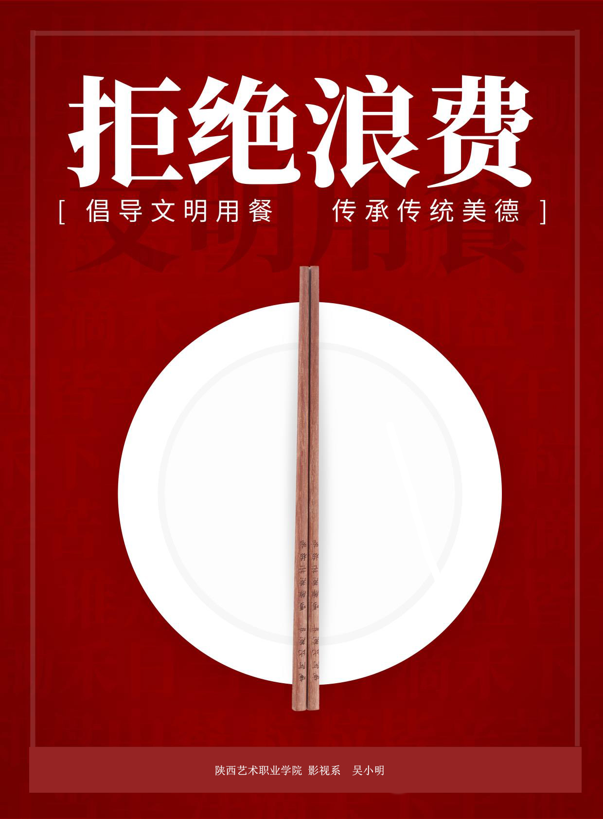 一粥一饭当思来之不易,半丝半缕恒念物力维艰。近日,陕西艺术职业学院影视系师生“海报话节约”,倡议珍惜粮食、文明用餐,厉行节约,坚决拒绝舌尖上的浪费,推广“光盘行动”新“食尚”。让我们一起做“光盘族”吧!